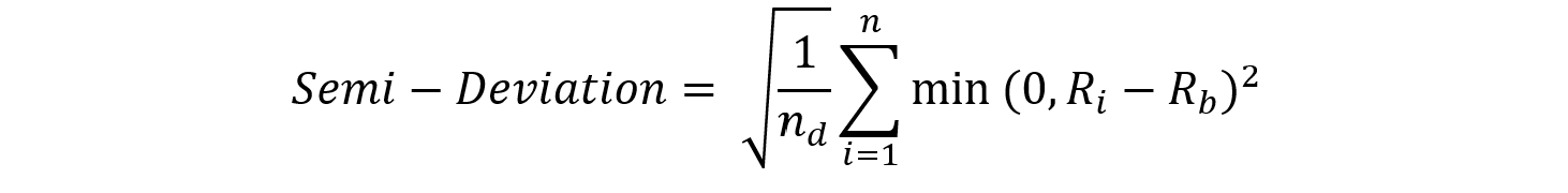 The semi-deviation calculates the square root of the average squared negative deviations from the mean (or a return target).