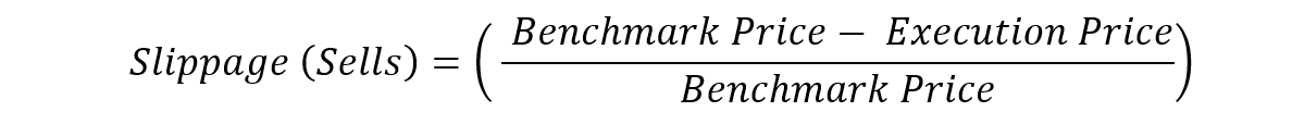 Slippage (Sells) = ((Benchmark Price- Execution Price) / (Benchmark Price))